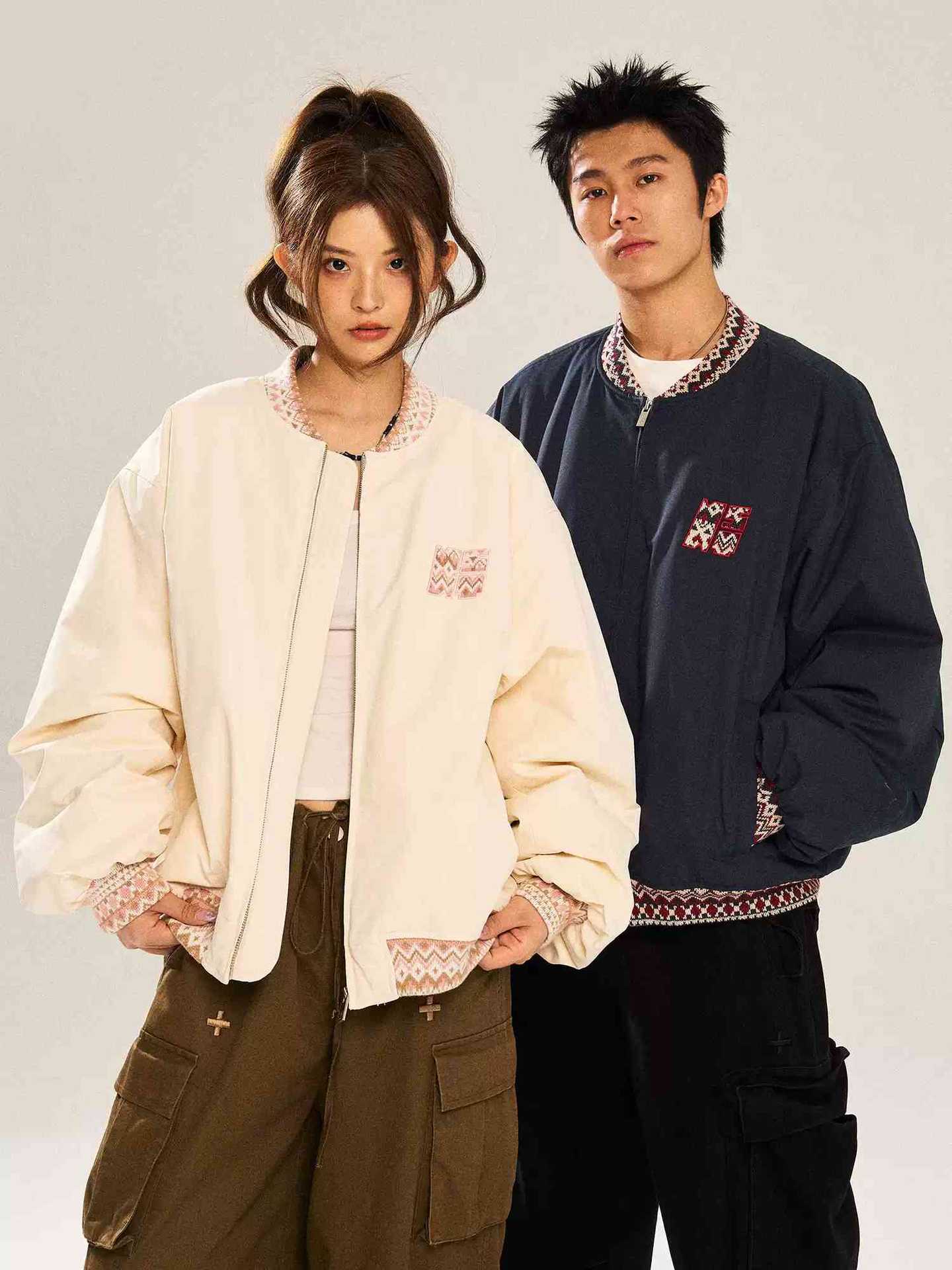 Jacquard Baseball Stitch Loose Jacket