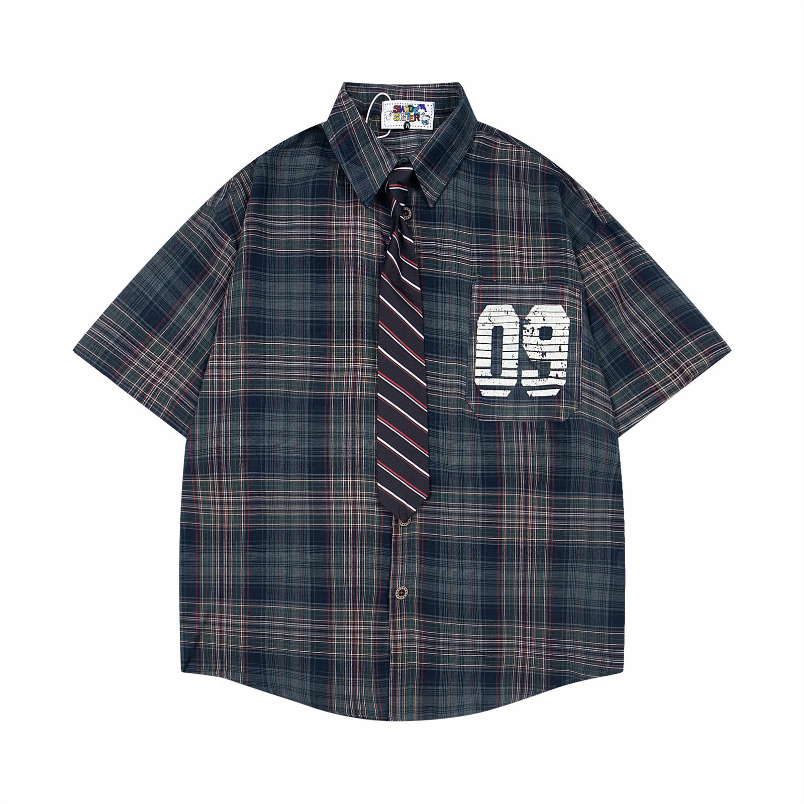 Retro Style: American retro college style plaid shirt with a classic tie design.