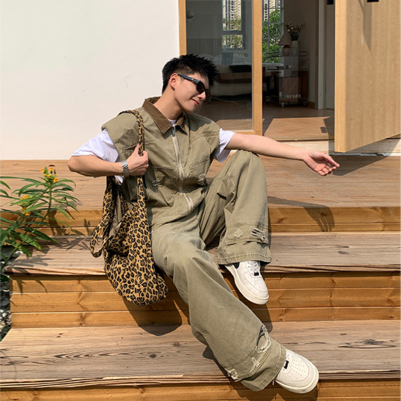Color Options: Khaki vest, khaki pants, white short T-shirt