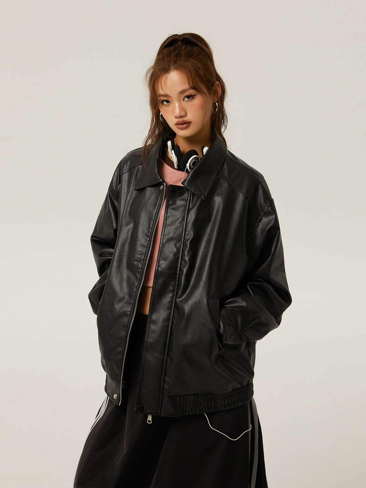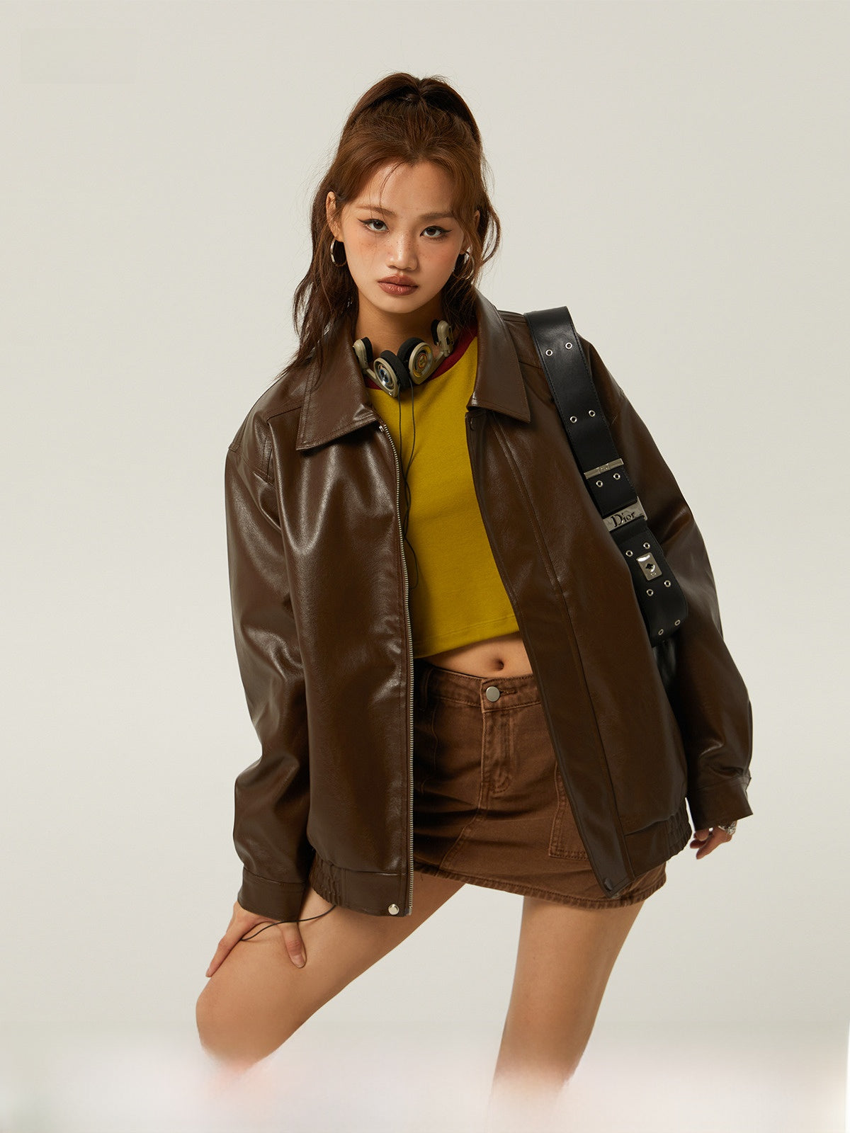 Women's Brown PU Motorcycle Leather Jacket Spring Outwear